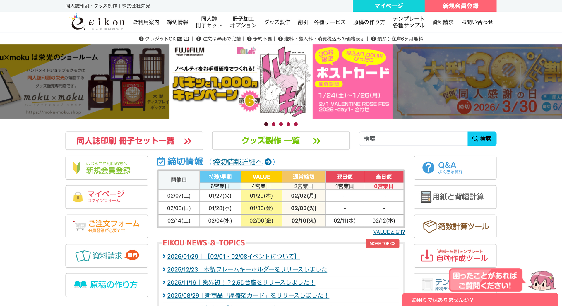 イベントに合わせての締切スケジュールが明確に提示されているので、計画的に制作を進められる点も魅力です。
