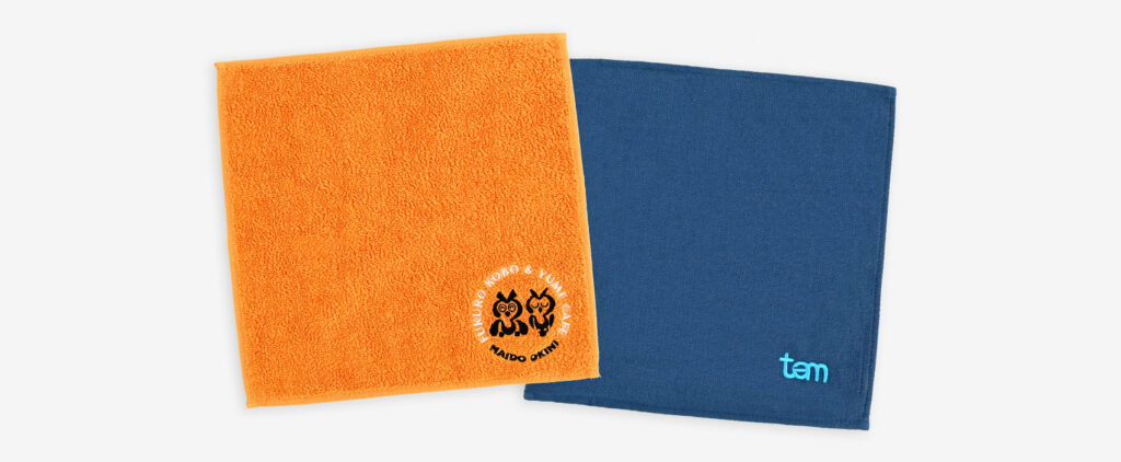 創業1971年のオリジナルタオル作成の専門業者として、数多くの実績と専門知識でお手伝いします。デザイン無料、見本サンプルも無料でお届け。刺繍からプリントまで、まずはお気軽にご相談ください。